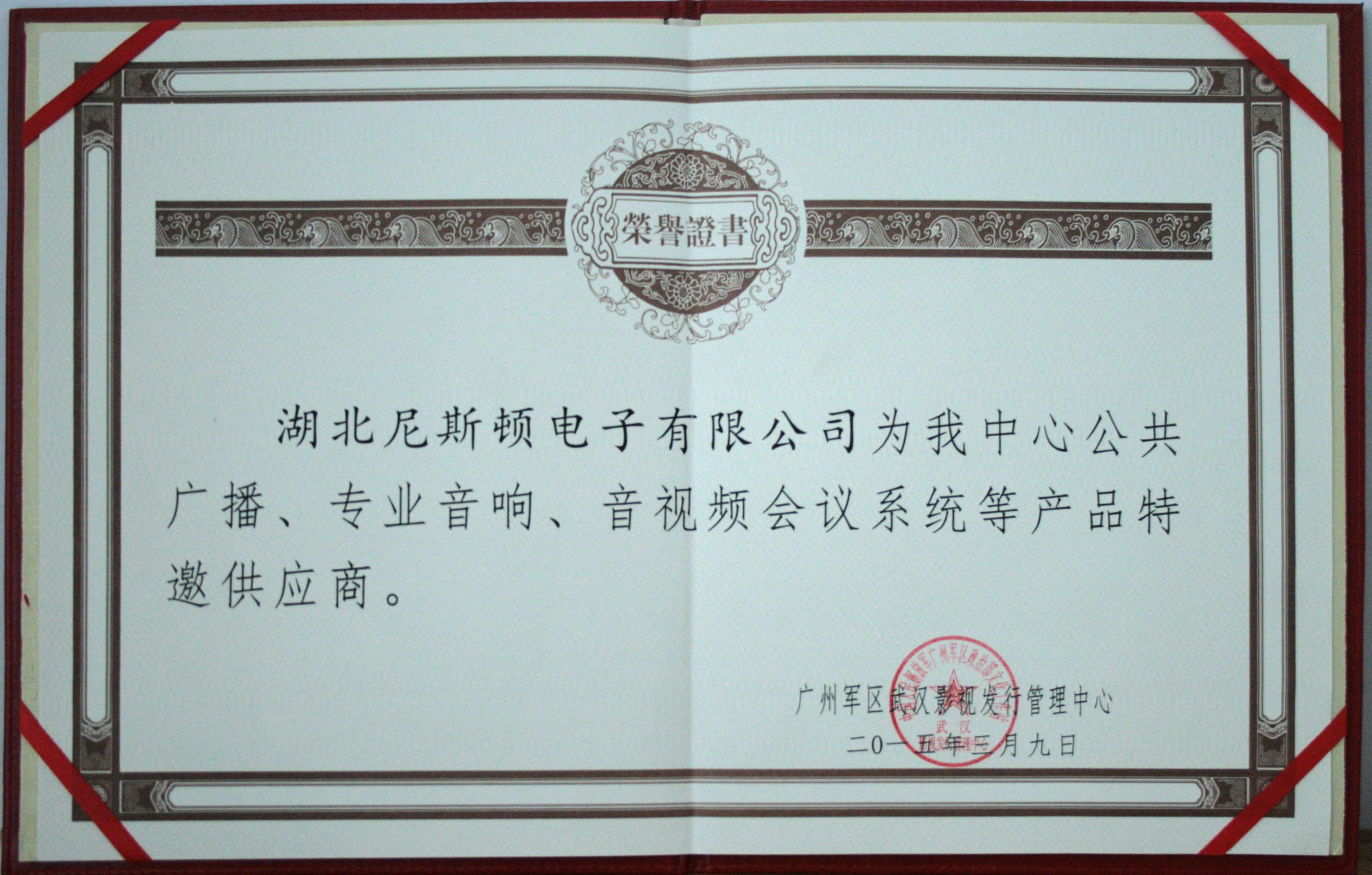 熱烈祝賀我司成為廣州軍區(qū)武漢影視發(fā)行管理中心特邀供應(yīng)商!