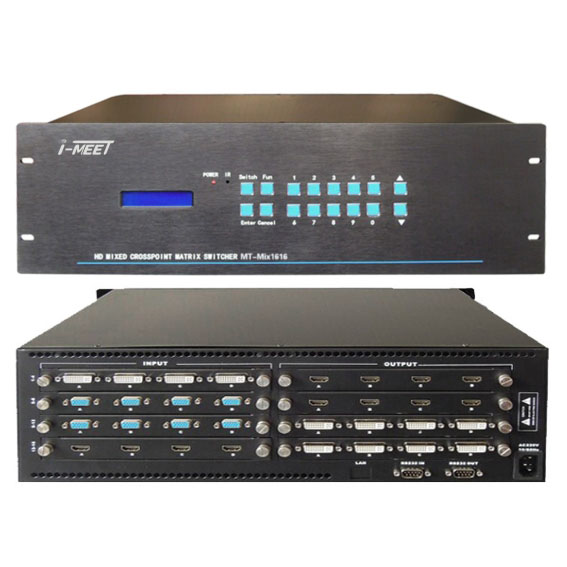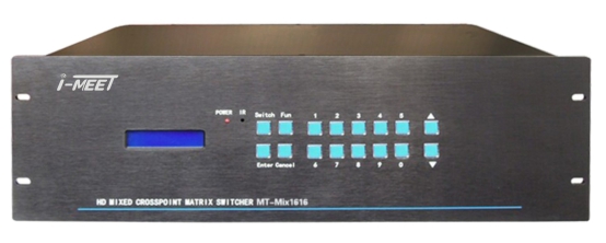 艾瑪拓MT-MIX1616混合矩陣切換器是一款配置靈活的矩陣信號切換器。采用高性能的模塊化硬件設(shè)計,完美支持各類高清晰數(shù)字/模擬信號切換處理,該系統(tǒng)將高清視頻信號切換控制、各類視頻格式轉(zhuǎn)換、傳輸以及網(wǎng)絡(luò)遠程管理等功能融合為一體,不但實現(xiàn)了模擬信號,數(shù)字信號的高清轉(zhuǎn)換和路由功能,而且可以對視頻信號進行補償,修正,驅(qū)動等功能。LCD液晶顯示通道狀態(tài),內(nèi)置輪循切換功能。持現(xiàn)場斷電保護功能,具有斷電記憶功能;該系列產(chǎn)品可廣泛應(yīng)用于大屏幕投影顯示工程、多媒體教學(xué)、報告廳、指揮控制中心、酒店、多媒體會議室、影音展示廳等場合。